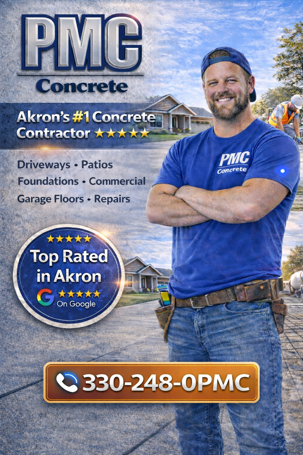 PMC Concrete is a family-owned and operated business, rooted in Akron, Ohio. Our journey began with a passion for transforming ordinary concrete into extraordinary creations, and today, we stand as a beacon of excellence in the concrete industry. We bring years of experience, expertise, and an unwavering commitment to delivering top-tier concrete installation and replacement services to our valued customers. Whether you want to replace an old driveway, install a new patio or just want to add beauty to your property with stamped and decorative concrete - Our team at PMC has you covered. Literally! Call us today to schedule a free, no-hassle estimate.